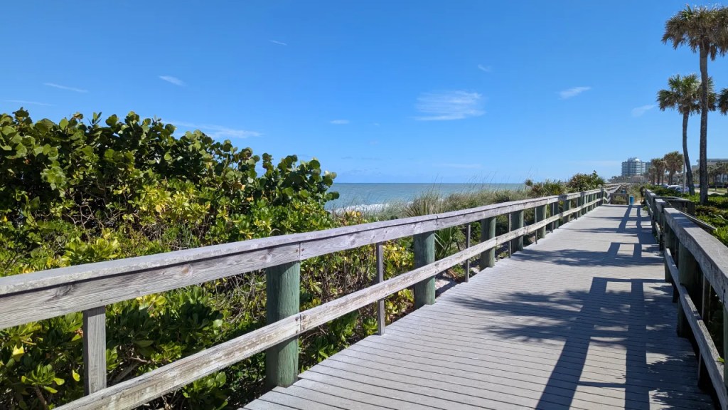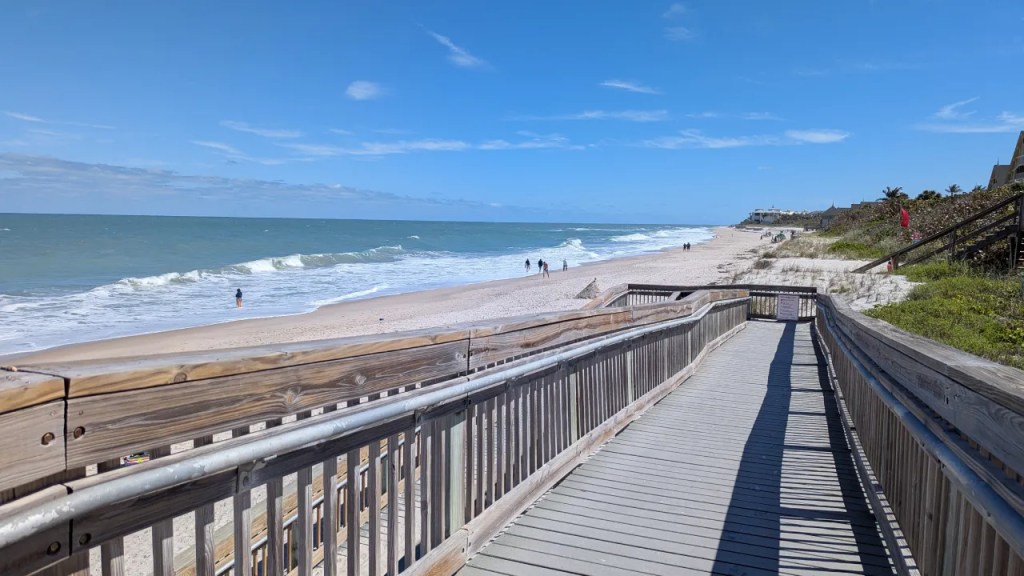 This beach is very easy to access if you are coming over the bridge from Wabasso/Sebastian (on the mainland). However, because of its location, it was very busy on a “cold” day. There isn’t a lot of on-site parking, compared to the other beach parks. So, I think it will be hard to find parking on a hot weekend day, unless you get there in the morning before 10 am or late afternoon after 4 pm. If you come here and don’t find a parking spot, then head North on A1A to Golden Sands or Treasure Shores.
