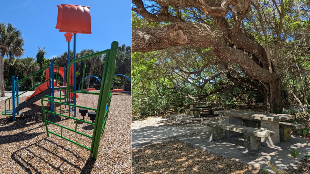 Round Island Beach Park has spacious beaches, a clean restroom, lifeguard, playground, picnic tables and an interesting history. The entry to the beach has a bit of an odd hump to it, but I think that will be reworked in the near future. This location is at the southern end of Indian River County, and it’s tied with Treasure Shores Park for second place in our ranking.